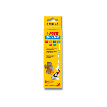 The sera Quick Test provides the optimal possibility to check the most important water parameters (pH value, carbonate hardness, total hardness, nitrate, nitrite and chlorine) in the aquarium with just one test strip quickly and without any problems.